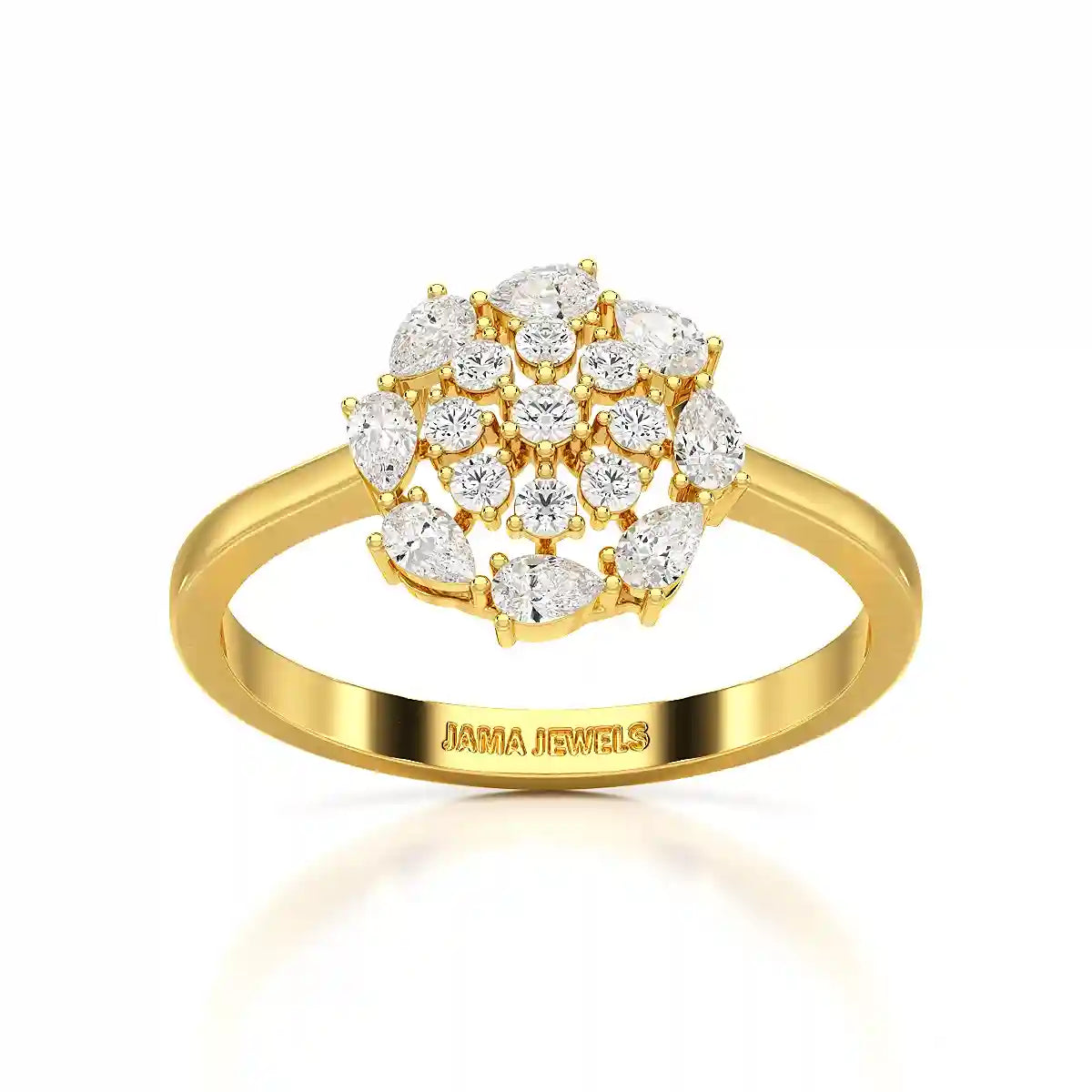 Exude understated elegance with the 0.35 CT Cluster Ring, a stunning addition to the Fine Jewellery Collection by Jama Jewels. Featuring a sophisticated arrangement of pear and round cut lab-grown diamonds, this ring captures light from every angle, creating a dazzling display of brilliance. Its unique cluster design blends classic charm with contemporary style, making it perfect for special occasions or as a refined everyday accessory. Crafted with ethical materials, this piece embodies both luxury and responsibility, appealing to those who value timeless beauty with conscious craftsmanship.
