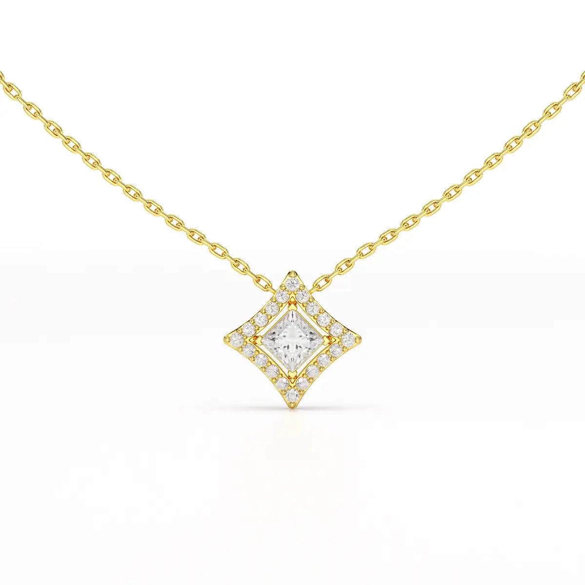 Exude sophistication and timeless elegance with the 0.70 CT Princess Cut Halo Chain Pendant with Round Diamonds from Jama Jewels’ Fine Jewellery Collection. At its heart lies a brilliant princess-cut lab-grown diamond, beautifully framed by a halo of sparkling round diamonds, amplifying its radiance and creating a mesmerizing sparkle from every angle. Expertly crafted with precision and attention to detail, this pendant embodies modern luxury while celebrating classic design. Perfect for elevating everyday outfits or making a statement at special occasions, it is a versatile piece that blends elegance, craftsmanship, and sustainable luxury seamlessly.