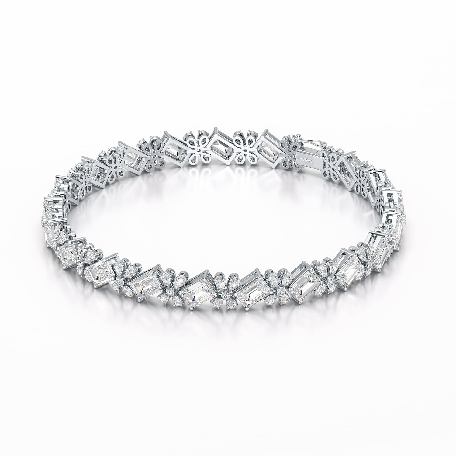 This breathtaking bracelet from Jama Jewels showcases 11.95 carats of lab-grown diamonds, featuring a mix of emerald and pear cuts. The elegant design combines classic and contemporary styles, making it a perfect statement piece for any jewelry collection.