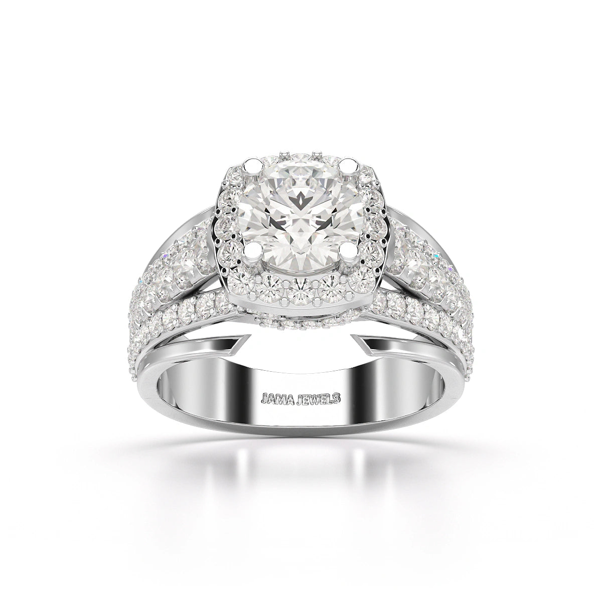 Discover the allure of the 2.80 CT Layered Lab Diamond Ring by Jama Jewels, a perfect blend of elegance and modern sophistication. This stunning ring showcases a 2.80-carat lab-grown diamond, surrounded by layered rows of smaller diamonds that amplify its sparkle and presence. The unique layered design adds depth and dimension, making it a standout piece for any jewelry collection. Perfect for engagements or special milestones, this ring embodies the essence of sustainable luxury and timeless style.