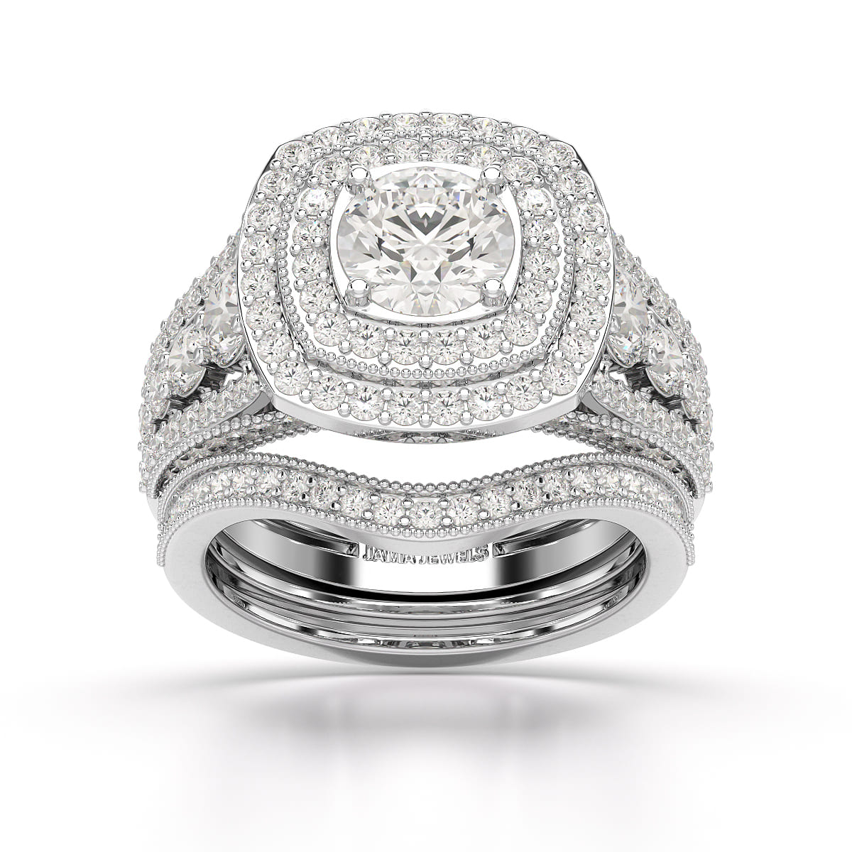 Experience timeless elegance with the 2.9 CT Round Cut Halo Lab Diamond Ring. This stunning piece features a brilliant round-cut lab diamond at its center, renowned for its radiant sparkle and classic allure. Surrounding the central stone is a dazzling halo of smaller diamonds, amplifying its brilliance and creating a captivating display of light. The halo design enhances the round cut's natural beauty, adding depth and dimension to the ring. Crafted with precision and sophistication, this ring is perfect for those who seek a blend of timeless charm and modern elegance. A symbol of luxury, it is sure to leave a lasting impression.