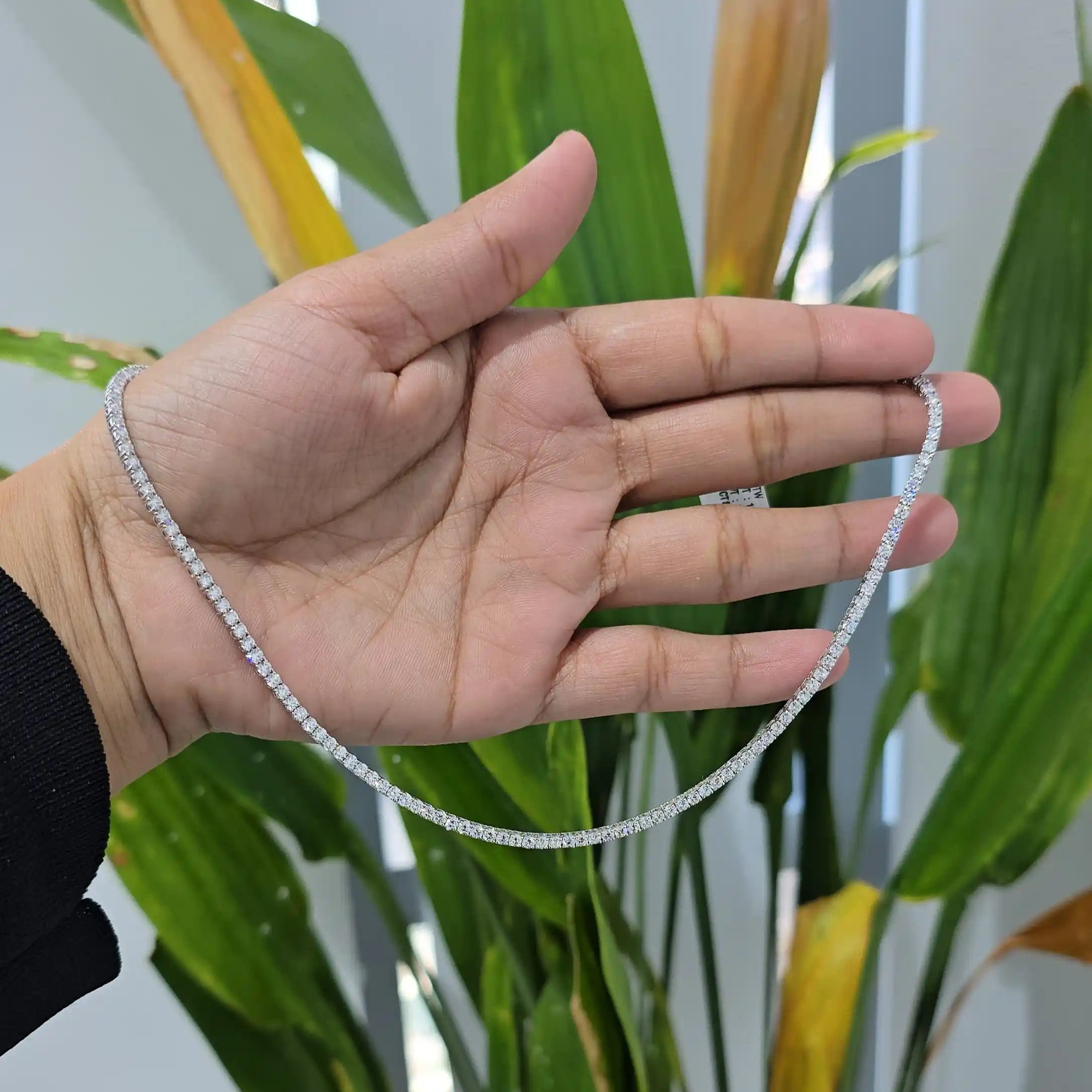 The 8.45 CT Round Cut Lab Diamond Tennis Necklace from Jama Jewels is the kind of piece that instantly elevates any look. Designed with a flawless line of brilliant round lab-grown diamonds, it delivers that classic tennis-style shimmer—clean, timeless, and effortlessly luxurious. Each stone is precision-set to create a smooth, continuous flow of sparkle that sits beautifully on the neckline. This necklace is ready for delivery, making it perfect for last-minute gifting or treating yourself without the wait. Whether you're dressing up for an event or adding a touch of refined glamour to your everyday style, this piece offers a stunning blend of sophistication, ethical craftsmanship, and long-lasting brilliance.