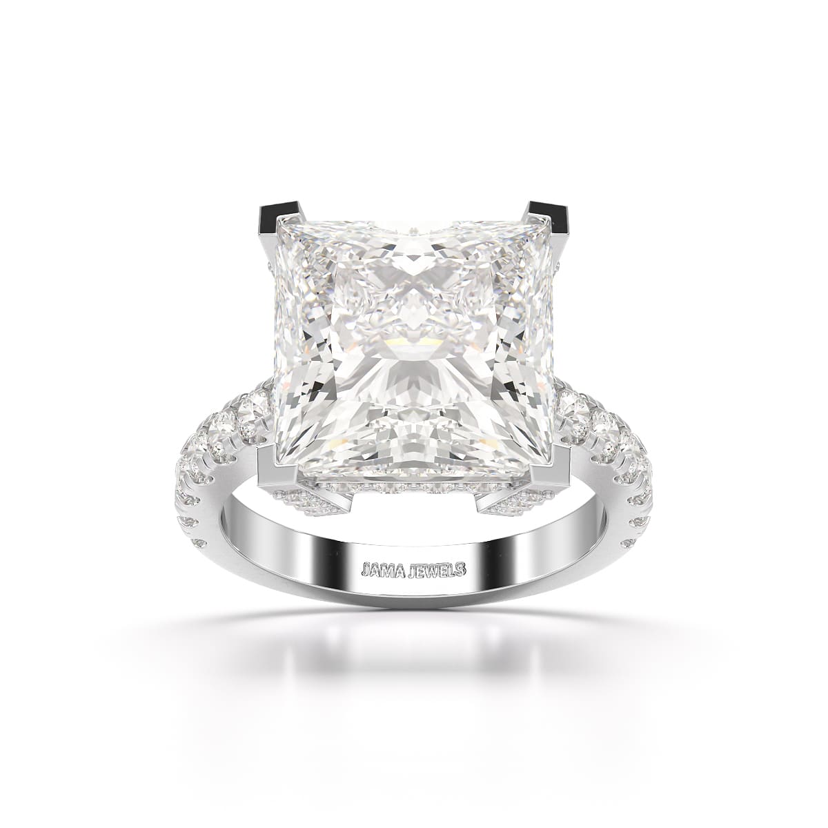 Step into luxury with the 11.42 CT Lab Diamond Princess Cut Hidden Halo Ring, a showstopper designed to dazzle. At its heart is a magnificent princess-cut lab diamond, admired for its sharp, clean lines and unparalleled brilliance. The hidden halo design discreetly enhances the central stone with a circle of smaller diamonds, adding subtle radiance and depth without distracting from the centerpiece. This expertly crafted ring combines the modern elegance of the princess cut with the sophisticated sparkle of the hidden halo, making it the perfect choice for those who seek bold luxury with a refined touch.