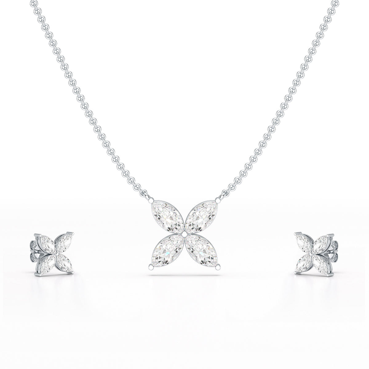 Discover the epitome of elegance with Jama Jewels' 3.2 CT Marquise Cut Lab Diamond Earring and Pendant Set, featuring a trio of marquise-cut lab-grown diamonds that showcase their signature brilliance and elongated shape. Totaling 3.2 carats, the earrings and pendant are designed to catch the light from every angle, creating a breathtaking sparkle that complements any outfit. Expertly set in high-quality metal, this matching set blends sophistication with modern style, perfect for both special occasions and everyday wear. Ethically sourced and environmentally friendly, the lab-grown diamonds offer the same exceptional beauty and quality as mined diamonds, with the added assurance of responsible production. Whether for your own collection or as a perfect gift, this set is sure to make a lasting impression.