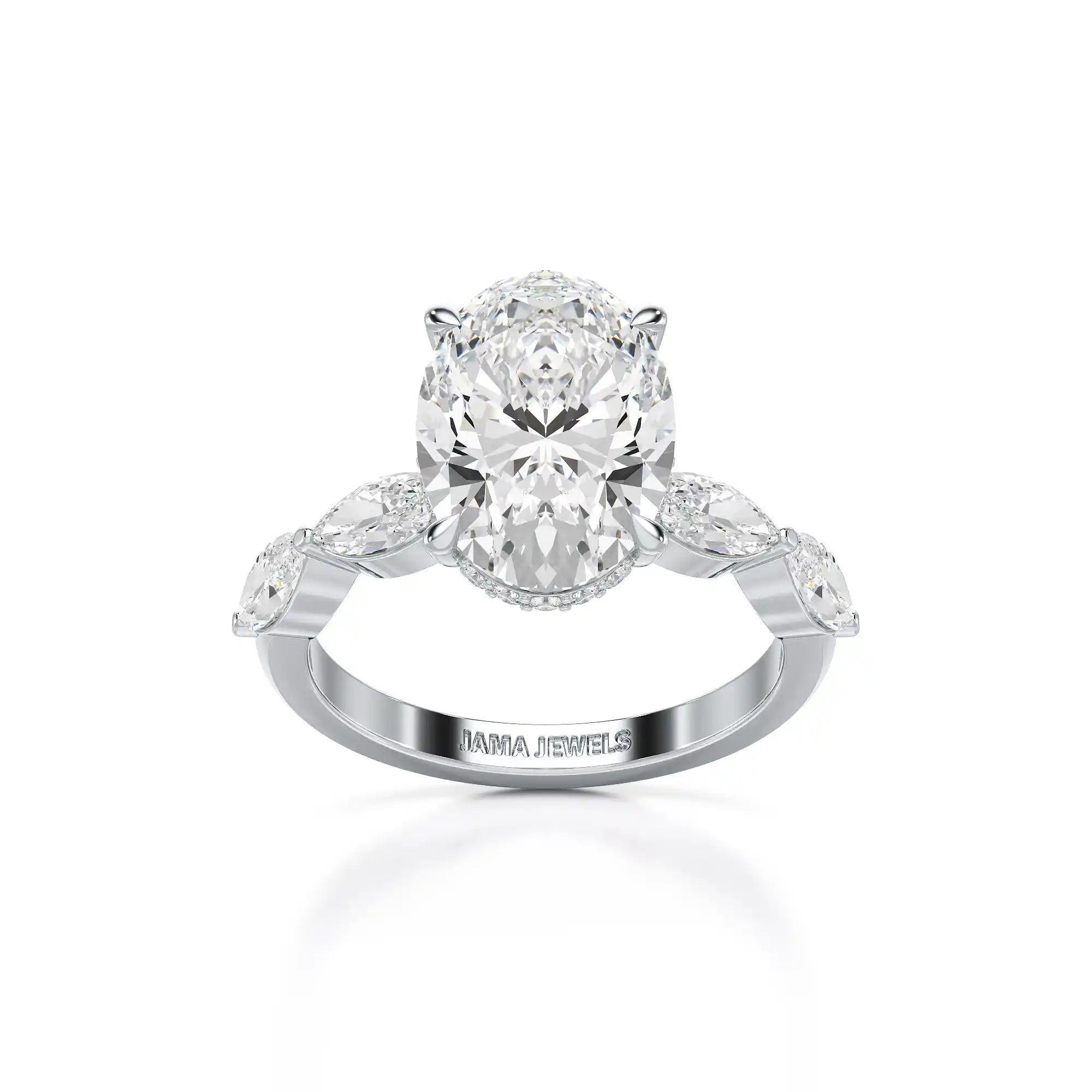 Exuding sophistication and brilliance, the 3.40 CT Oval Cut Ring with Marquise & Round Cut Side Diamonds from Jama Jewels is a true statement of timeless beauty. The center oval-cut lab-grown diamond radiates exceptional sparkle, while the marquise and round side stones add a touch of intricate charm and dimension. Expertly handcrafted with precision and care, this ring embodies modern luxury, ethical craftsmanship, and everlasting elegance—perfect for engagements, anniversaries, or meaningful celebrations.