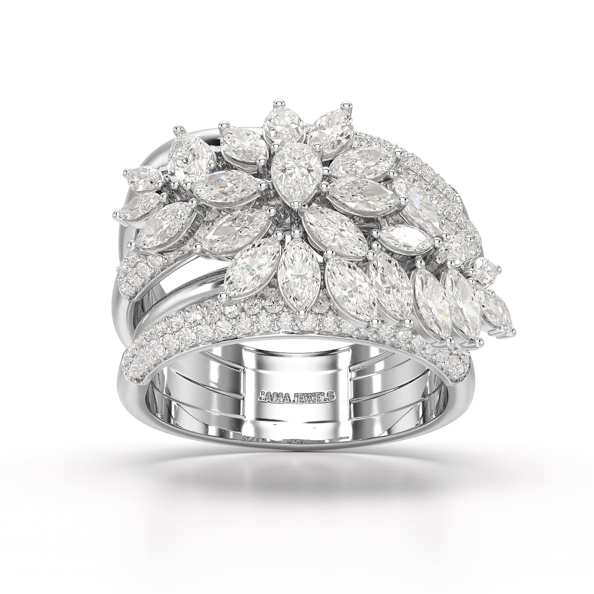 The 3.58 CT Lab Diamond Layered Ring from Jama Jewels showcases a stunning multi-layered design, highlighting a brilliant lab diamond centerpiece for a luxurious, modern look. Perfect for those who appreciate unique and sustainable jewelry.
